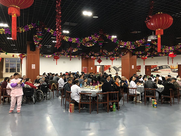 老人和工作人员观赏晚会